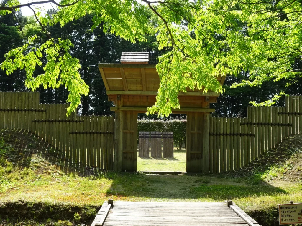 野外展示では、発掘調査成果をもとに復元された建物などを見学できます。