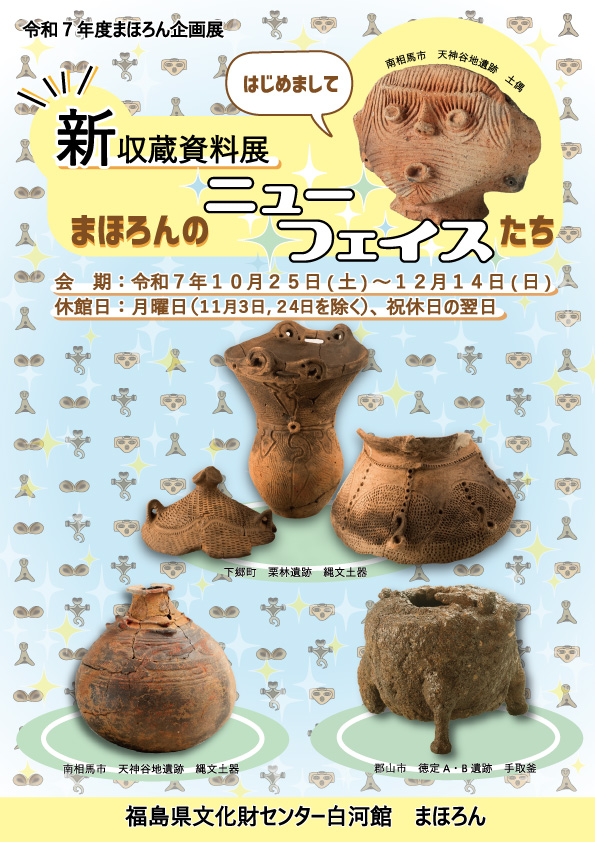 福島県文化財センター白河館・まほろんには、福島県内各地で行われた発掘調査で出土した遺物がたくさん収蔵されています。その中から、近年新たに収蔵された期待の「新顔」たちを皆さんに初お披露目! 遺跡の発掘調査成果とともに、今後注目の新たな遺物たちにスポットを当てて紹介します。